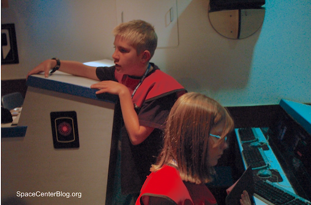 Last Friday we had 45 campers from Sego Lily Elementary School in Lehi. They were all Fifth Graders. Yes, that means most of the simulators drop to level 0 missions. Sign in went smoothly. I was standing there with 45 kids - already done with my pre-visit rule review and divide them into simulators - I turned around to introduce them to the Flight Directors and no one there except Mr. Daymont for the Falcon. I divided them into their ships. By then I had someone from the Galileo there. Mark took his crew to the Falcon. The Galileo second chair took his crew and that left my crew, Magellan, and Odyssey. I sent the Odyssey to their simulator with a Voyager. I took my crew to the Briefing Room and went back to fetch the Magellan crew.
