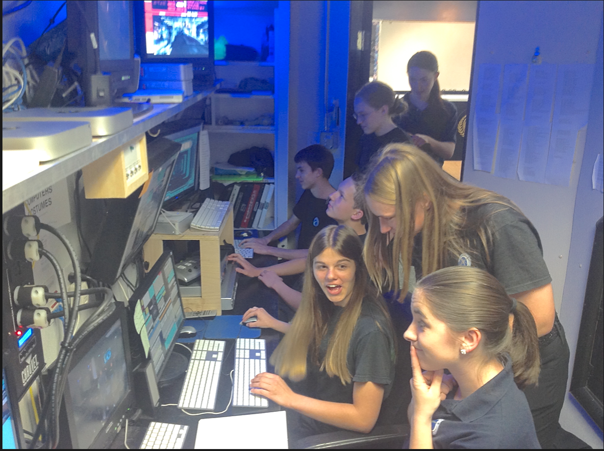 The crew decided to train by recording. Bradyn and Dakota review the Tactical station.